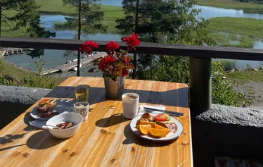 Accommodation includes breakfast, shower and toilet in the main building. Guests can also use a scenic porch. In winter, there is an opening on the beach and a few days a week there is a public sauna. Private sauna sessions can be inquired by email.