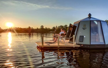 We are sure that a night without the north on the water will be a memorable experience that you will remember for a long time. You can experience it in a wonderful way on the exotic Oulujoki ride on the river igloo. You are in the middle of a picturesque paradise, you are progressing according to your own schedule and there is no congestion around you. There is only space and unique scenery. With the river igloo, you proceed safely and at your own pace to the river igloo buoys located in the best places on the Oulu River. Of course, you can also stop on the river at a place of your choice. You can bring food and drinks with you and prepare your own river igloo in the kitchenette or on the grill.